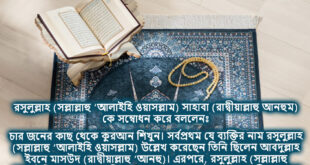 خاطب رسول الله صلى الله عليه وسلم الصحابة رضي الله عنهم فقال: خذوا القرآن من أربعة من عبد الله بن مسعود – فبدأ به -، وسالم مولى أبي حذيفة، ومعاذ بن جبل، وأبي بن كعب رضي الله عنهم (صحيح البخاري، الرقم: ٣٨٠٨) রসুলুল্লাহ (সল্লাল্লাহু ‘আলাইহি ওয়াসল্লাম) সাহাবা (রাদ্বীয়াল্লাহু আনহুম) কে …