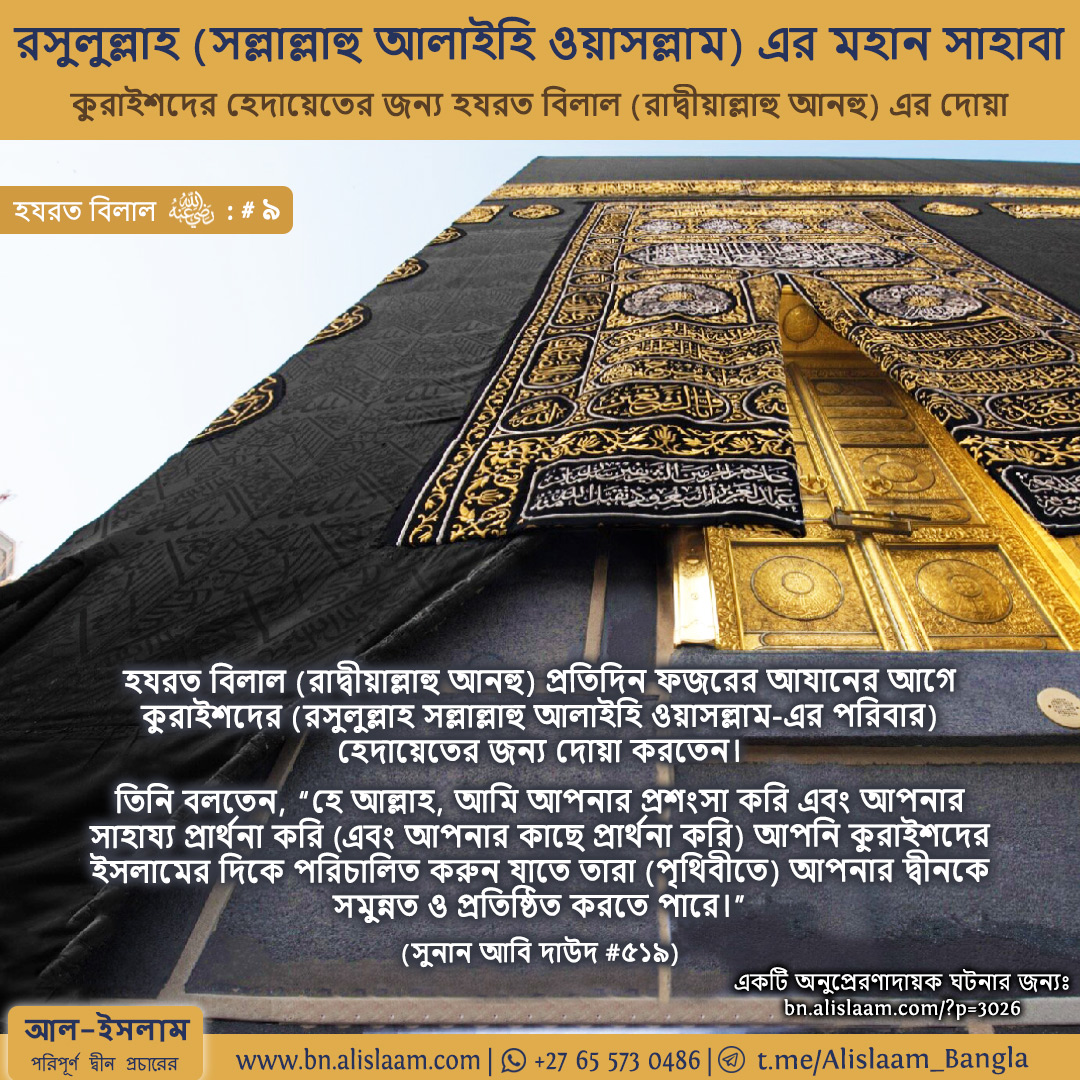 হযরত বিলাল (রাদ্বীয়াল্লাহু আনহু) প্রতিদিন ফজরের আযানের আগে কুরাইশদের (রসুলুল্লাহ সল্লাল্লাহু আলাইহি ওয়াসল্লাম-এর পরিবার) হেদায়েতের জন্য দোয়া করতেন।